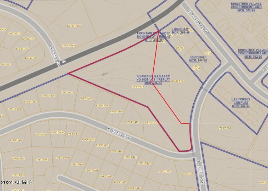 Beautiful 2.6 acre parcel zoned R1-8 with excellent views of Red mountain. Preliminary talks with the city indicate the possibility of splitting the lot into 3 to 5 parcels with a long private drive up to the building sites enjoying Red Mountain views and privacy. Great location with easy access to Shea Blvd and only a couple of miles to downtown Fountain Hills. See documents tab for Aerial, sewer, and contours. This property is under the jurisdiction of the NPOA (Neighborhood Property Owners Association). This organization is NOT an HOA and has no monthly fees, but does impose a set of CCRs and other guidelines. Survey has been ordered.