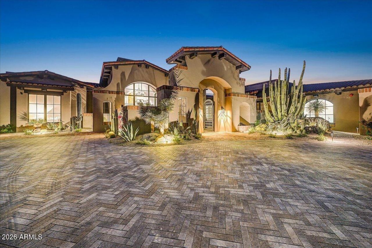 FULL GOLF MEMBERSHIP AVAILABLE. Thoughtfully designed by architect Tor Stuart and built by Gemini Development Corp, this Santa Barbara inspired home is a study in craftsmanship and quiet sophistication. Completed in the fall of 2025, this newly constructed estate in Painted Sky at Desert Mountain is a masterful blend of timeless architecture and modern desert living. The owners spent two years selecting finishes and materials to create elegant yet comfortable living spaces defined by warm textures, and enduring design elements including exposed wood beams, steel-framed windows and doors, and artisan brickwork.The great room serves as the heart of the home, where soaring ceilings, a dramatic stone fireplace, and expansive glass walls frame the surrounding desert landscape. At the center of the home, the kitchen is both refined and functional--featuring an oversized island, professional-grade appliances, custom cabinetry, and a fully equipped walk-in pantry designed for elevated entertaining.The primary suite offers a private retreat of exceptional scale and comfort, complete with a spa-inspired bath, freestanding soaking tub framed by floor-to-ceiling windows, and direct access to serene outdoor spaces. Guest suites are equally well-appointed, each offering en-suite baths and thoughtfully designed privacy.Additional spaces--including a dedicated office and flexible guest accommodations--provide versatility without compromising the homes cohesive design.Outdoors, the property transforms into a true resort setting. A negative-edge pool and spa, multiple covered patios, outdoor kitchen, and fire features are all positioned to capture sweeping desert and mountain views. Whether hosting or unwinding, the setting is both intimate and expansive.This is a residence where architecture, setting, and lifestyle converge--crafted for those who value design, detail, and an elevated desert experience.
