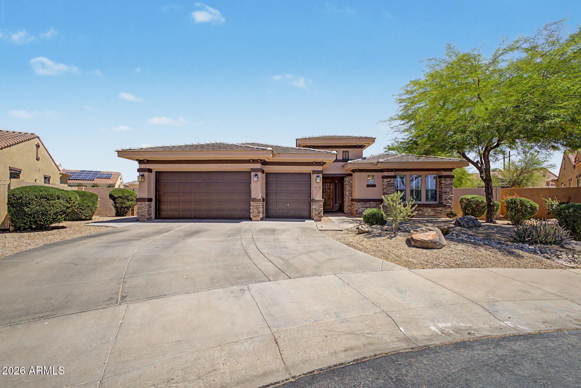 This beautifully maintained residence sits in the highly sought-after Estrella master-planned golf course community in Goodyear. Offering 5 bedrooms, 4 bathrooms, and a finished basement, this home combines spacious living with resort-style outdoor enjoyment. Freshly painted exterior, attractive Southwestern architecture with warm beige stucco, stone accents, and a tile roof. A generous 3-car garage and desert-landscaped front yard with mature trees create excellent street presence. Open-concept kitchen with rich dark wood cabinetry, granite countertops, large center island with breakfast bar, stainless steel appliances, gas cooktop, and double ovens. The HVAC was replaced in June of 25. Updated landscaping with new grass and plants in the backyard. Estrella is a gated golf course community packed with amenities: two community lakes with boat access, multiple pools, pickleball, tennis, volleyball, and basketball courts, extensive bike and hiking trails, playgrounds, and a vibrant clubhouse scene. Residents enjoy year-round outdoor living in one of Goodyears premier neighborhoods.This move-in-ready home perfectly balances luxurious indoor living with an incredible outdoor lifestyle. Whether youre relaxing by the pool, hosting gatherings around the fire pit, or taking advantage of the communitys world-class amenities, this property truly offers the best of Estrella living.