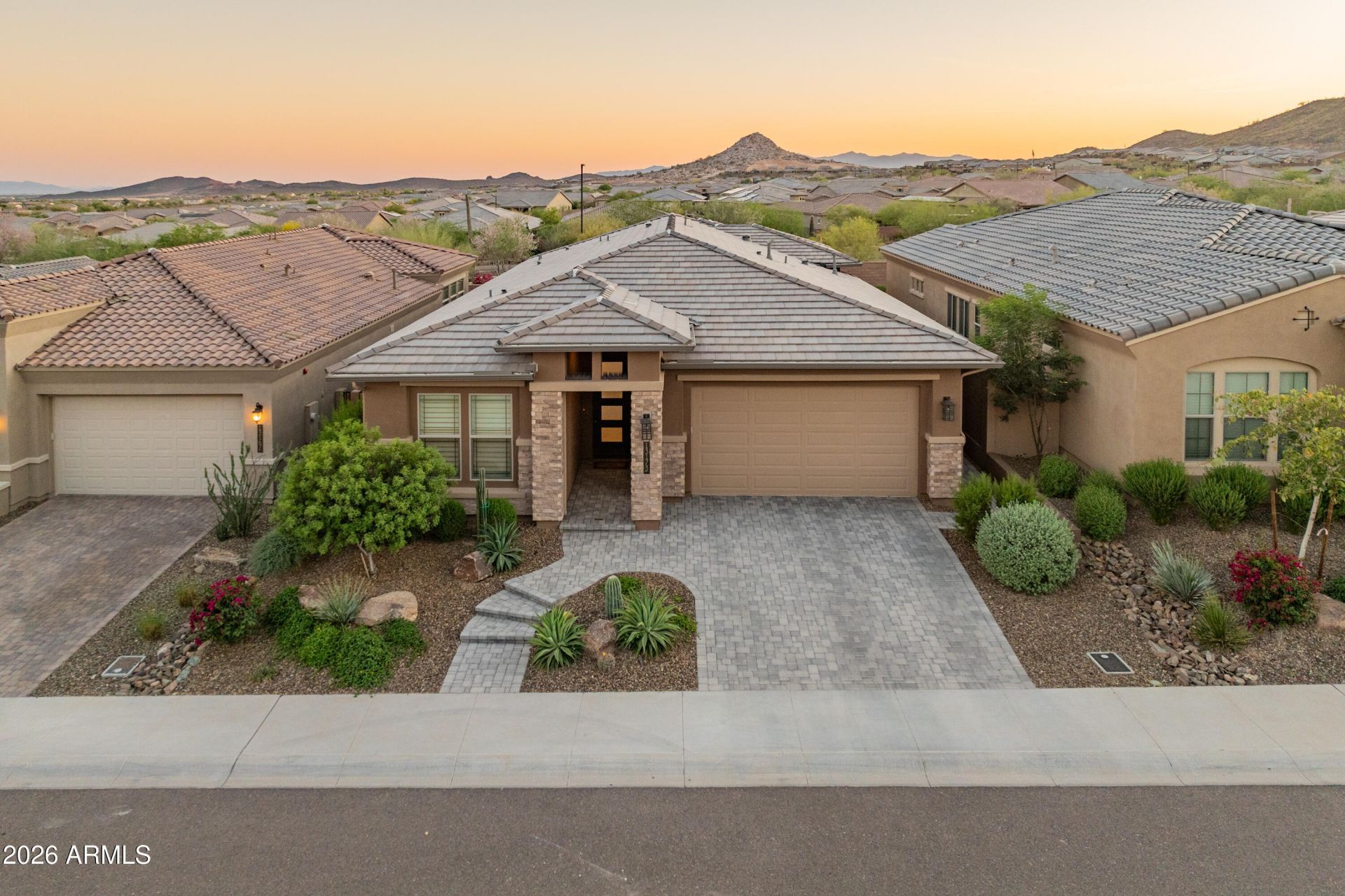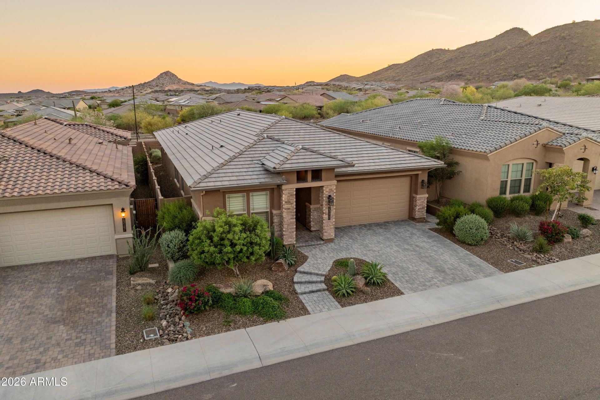 Welcome to Northpointe at Vistancia in scenic Peoria, AZ. This beautifully upgraded David Weekley home, built in 2022, offers modern design and exceptional comfort. The open main living area showcases soaring 12-foot ceilings and elegant porcelain tile flooring throughout. The chefs kitchen is equipped with premium GE Monogram appliances, while the backyard is perfect for entertaining with a built-in patio grill. Additional highlights include a luxurious super shower, automated window coverings, and a 3-car garage with coated flooring. Enjoy stunning mountain views and the peace of mind that comes with a meticulously maintained home--ready for immediate move-in.