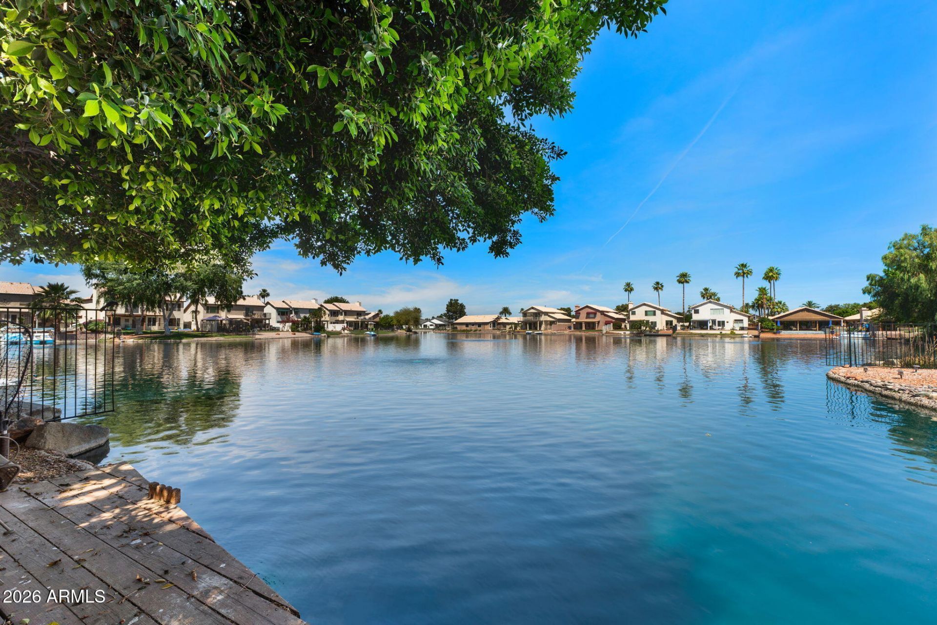 Enjoy Lake Living in this Beautiful 3 Bedroom, 2 Bath, 2 Car Garage Home at The Springs in Chandler. This fantastic home is open and spacious with vaulted ceilings and an updated kitchen with Newer Stainless Appliances and Granite Countertops. The Primary Bathroom has an Amazing Walk-in Shower and both bathrooms have been remodeled with newer cabinets, undermount sinks and beautiful tile work! The home has a freshly painted interior. Outside, enjoy your own backyard paradise with a huge pavered patio, lush green grass and the gorgeous lake view! Fish off of your own dock or relax on a lounge chair...a wonderful property to call your own! Enjoy the Community Pool, Pickleball, and the Biking path and so much more!