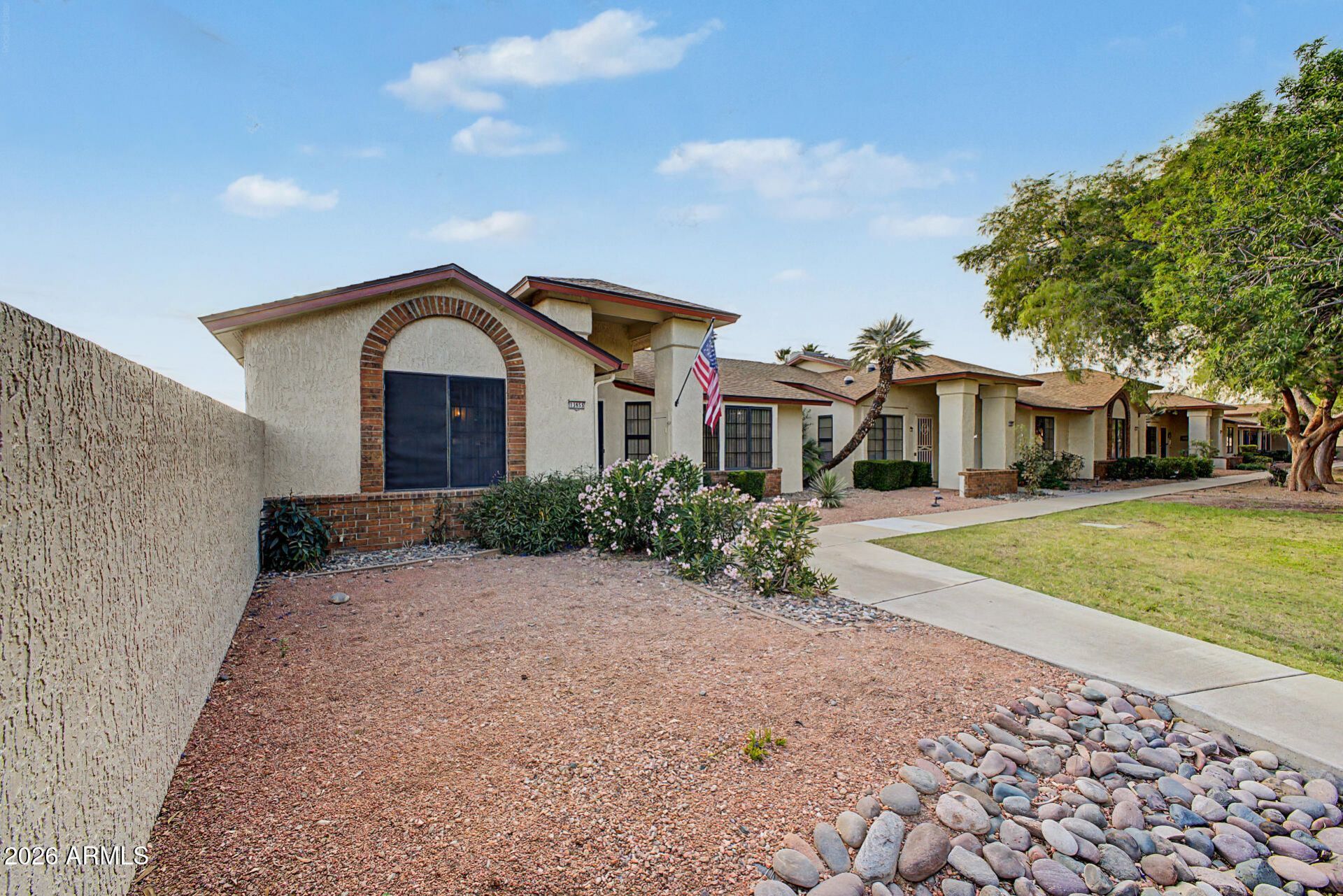 Spacious end-unit 2-bed, 1.75-bath Pueblo floor plan in desirable Sun City West 55+ community. This well-maintained home features an updated kitchen with granite countertops, new appliances, and LED lighting in a recessed ceiling. Additional updates include new carpet and washer/dryer in 2025, A/C in 2023, HOA-installed roof in 2023, and new outdoor carpet in 2024. The large primary suite offers a private slider to a beautifully landscaped courtyard with gate and golf cart space. Laundry room with desk area. Recent paint and epoxy floor in garage. Enjoy 7 golf courses, 4 rec centers, pickleball, tennis, bowling, and 95+ clubs. Great location close to shopping, dining, medical, and everyday conveniences. Great HOA ammenities including roof repair/replace, all water, sewer, garbage and more!