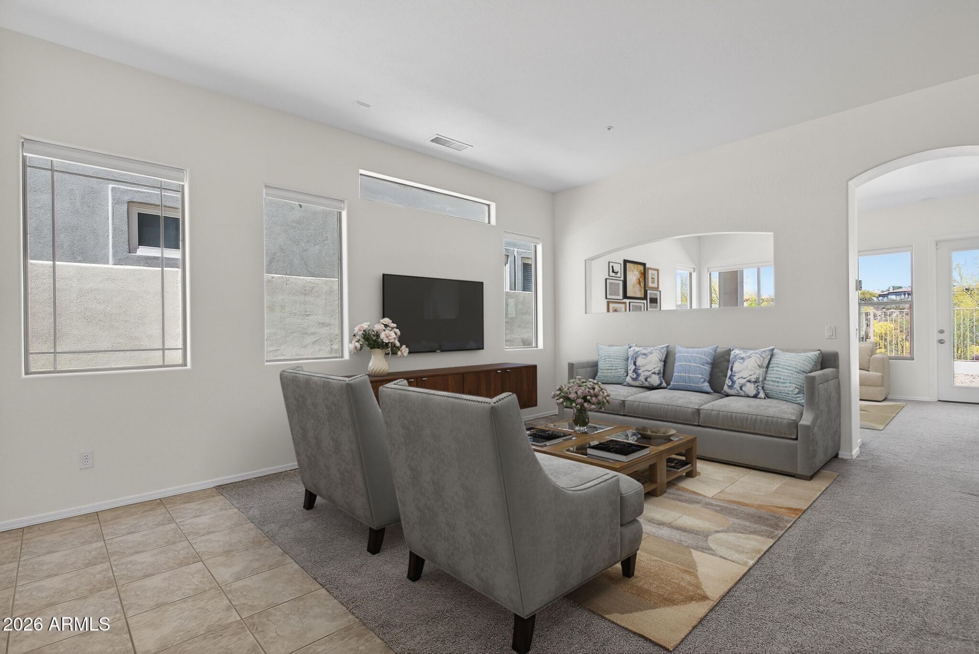 Nestled within the prestigious Sunridge Canyon golf community, this move-in-ready gem perfectly blends comfort with sophisticated desert living. The journey begins at an elegant double-door entry that opens into a spacious 1,838-square-foot floor plan, featuring a formal living and dining area alongside a cozy family room anchored by a gas fireplace and custom built-ins. At the heart of the home, the bright eat-in kitchen shines with white cabinetry, stainless steel appliances, and a versatile island with a breakfast bar. Retreat to the primary suite, a private sanctuary boasting a walk-in closet, a spa-like ensuite with a soaking tub and separate shower, and direct access to the outdoors. Practicality meets peace of mind with a dedicated laundry room featuring built-in cabinets, a modern fire sprinkler system, and an attached 2-car garage. The experience is completed by a low-maintenance backyard where a covered patio and view fencing offer a front-row seat to the desert scenery, golf course views, and the majestic Four Peaks silhouette.