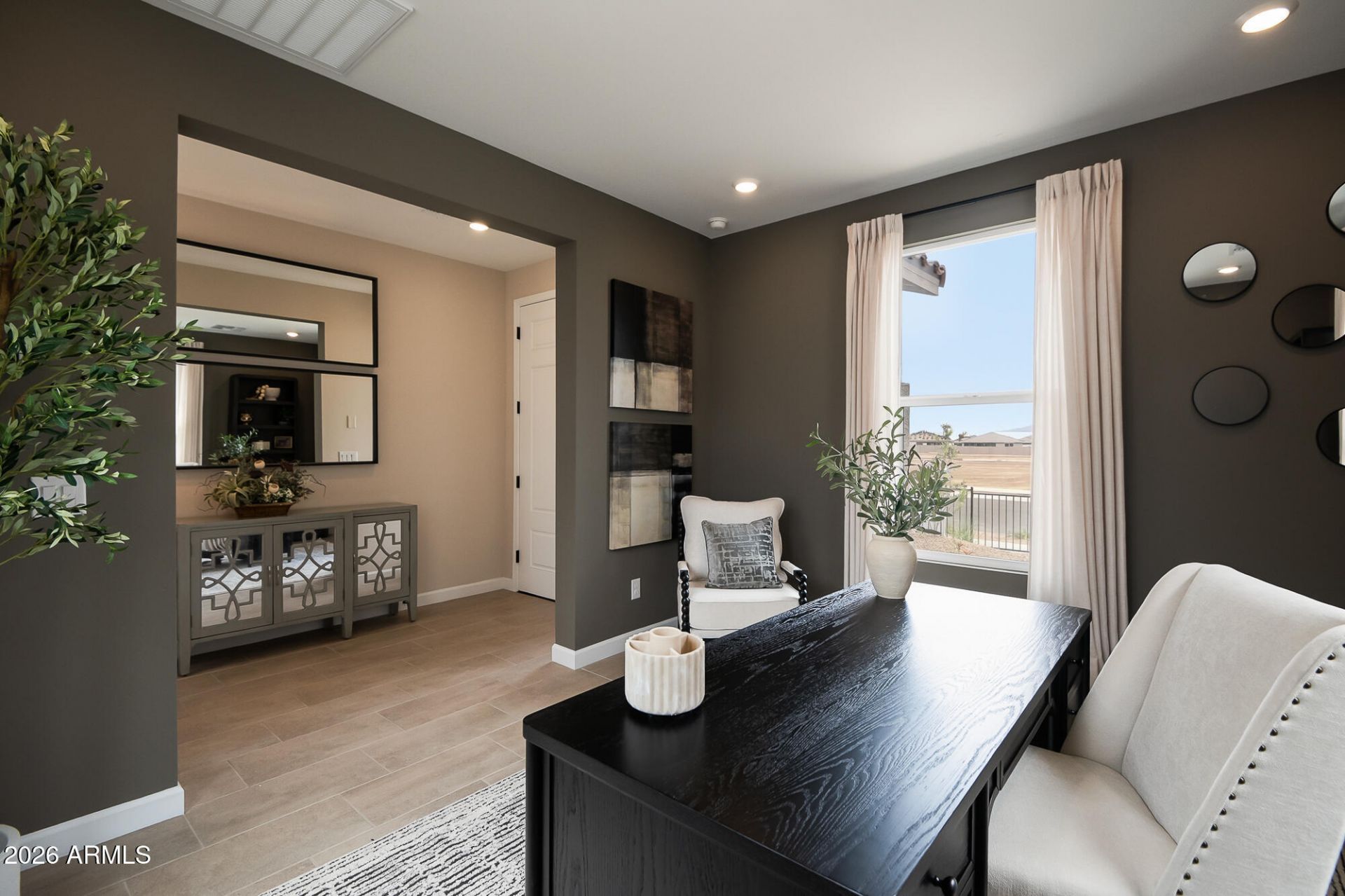 MODEL HOME, BUILDER LEASE-BACK OPPORTUNITY! SPECTACULAR NEW COMMUNITY by Dream Finders Homes, El Cidro, in Goodyear! HELIOS MODEL HOME - 3 BEDROOM, JACK N JILL BATH, BEAUTIFUL INTERIOR COURTYARD w/ pavers for indoor outdoor living! FLEX ROOM /DEN. Expansive covered patio, Backyard Travertine Pavers, built-in BBQ! Kitchen boasts gorgeous Quartz Countertops, Shaker Style Cabinets with soft close doors, Dovetail drawers, tiled backsplash 12 X 24 Floor Tile, carpet in bedrooms, 2-Tone paint, 8 Foot Interior doors and so MUCH MORE! This home has so much style, design and unique architectural flare!! *Ask about Builder Lease-Back details. *ASK ABOUT THE MODEL LEAS-BACK TERMS.
