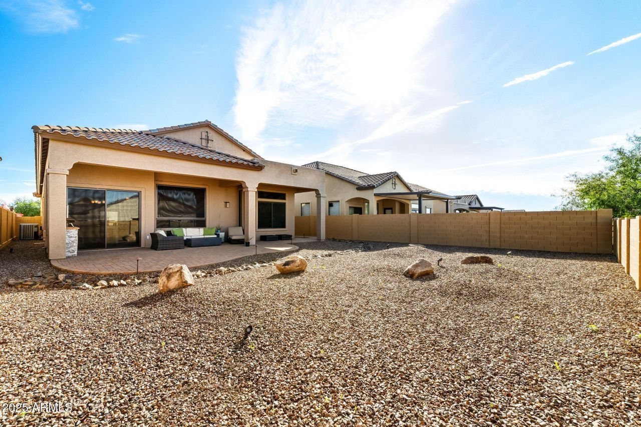 Fantastic west-facing Mountain Bridge home in the gated Escalante community. The dramatic 12 ceilings are found in the great room and all 3 bedrooms and really highlights the freshly painted interior and allows for lots of natural light. The great room has a gas fireplace and the kitchen has granite counters with SS appliances. The tandem 3 car garage has extra storage racks and the extended backyard patio has plenty of space for family gatherings. The water softener is new, and the exterior and block wall have also been recently painted. The award-winning Mountain Bridge community has tons of amenities including heated lap pool, spa, pickleball, tennis and basketball courts, fitness center, soccer field, multiple playgrounds, golf chipping and putting greens and more.
