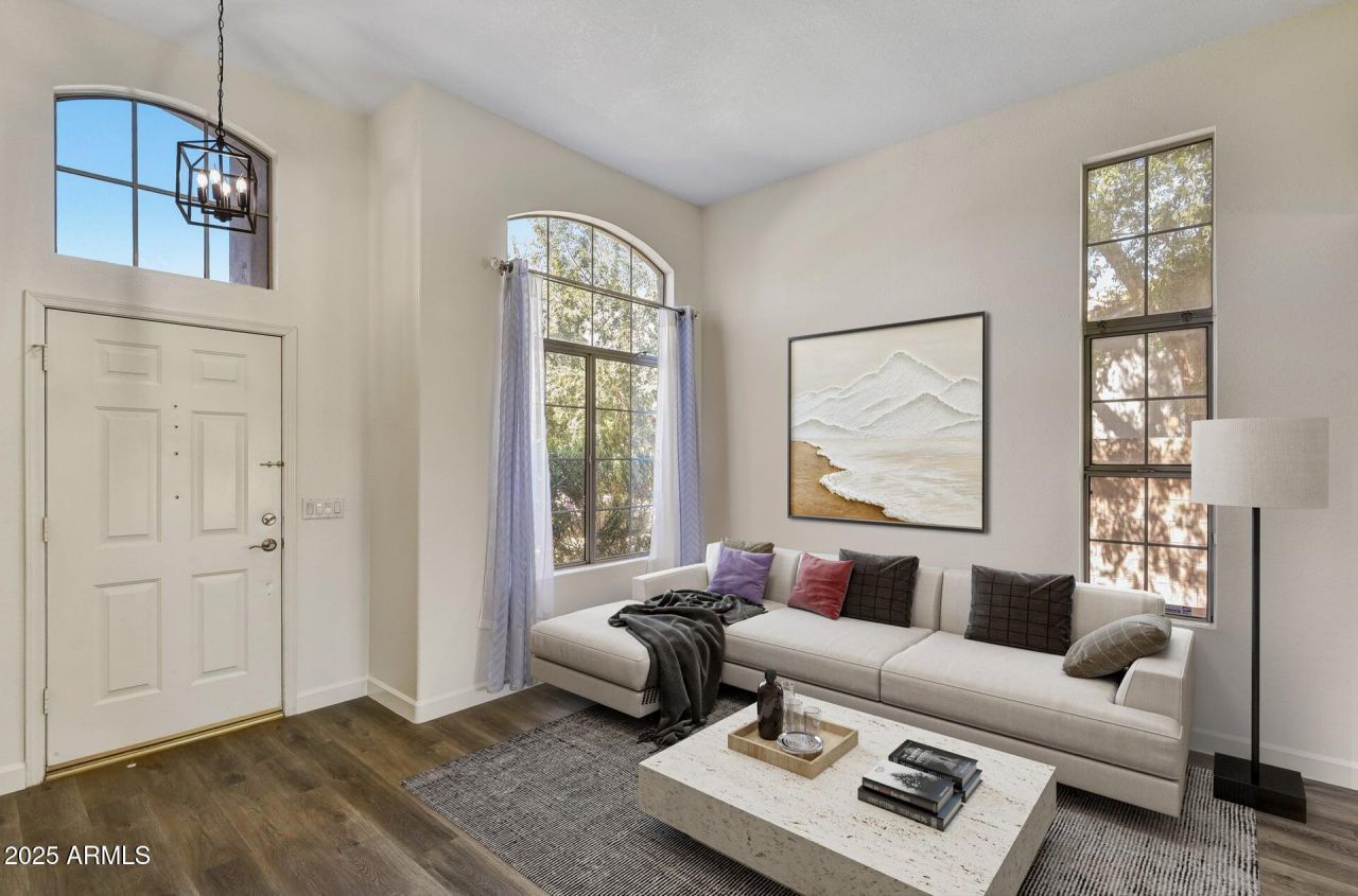 Terrific floor plan on this sunny & bright home in Hillcrest Ranch! Boasting high ceilings and large windows for natural light, this home feels just right the moment you enter. Main floor features living room, dining room, family room along with open kitchen with additional breakfast nook. Bedrooms all provide ample space & offer some mountain views along with the large lush trees filling this neighborhood! This spacious backyard offers a big grass area, covered patio, and a nice big shade tree over the extended patio decking. Great options for anyone looking to entertain, play, or just relax out back! Friendly neighborhood has walking paths great for those cool mornings. Neighborhood to install Wyyerd Fiber internet connections location is also nearby to many great parks, trails and hiking! Minutes away from Arrowhead Mall, P83, Spring Training and so much more!