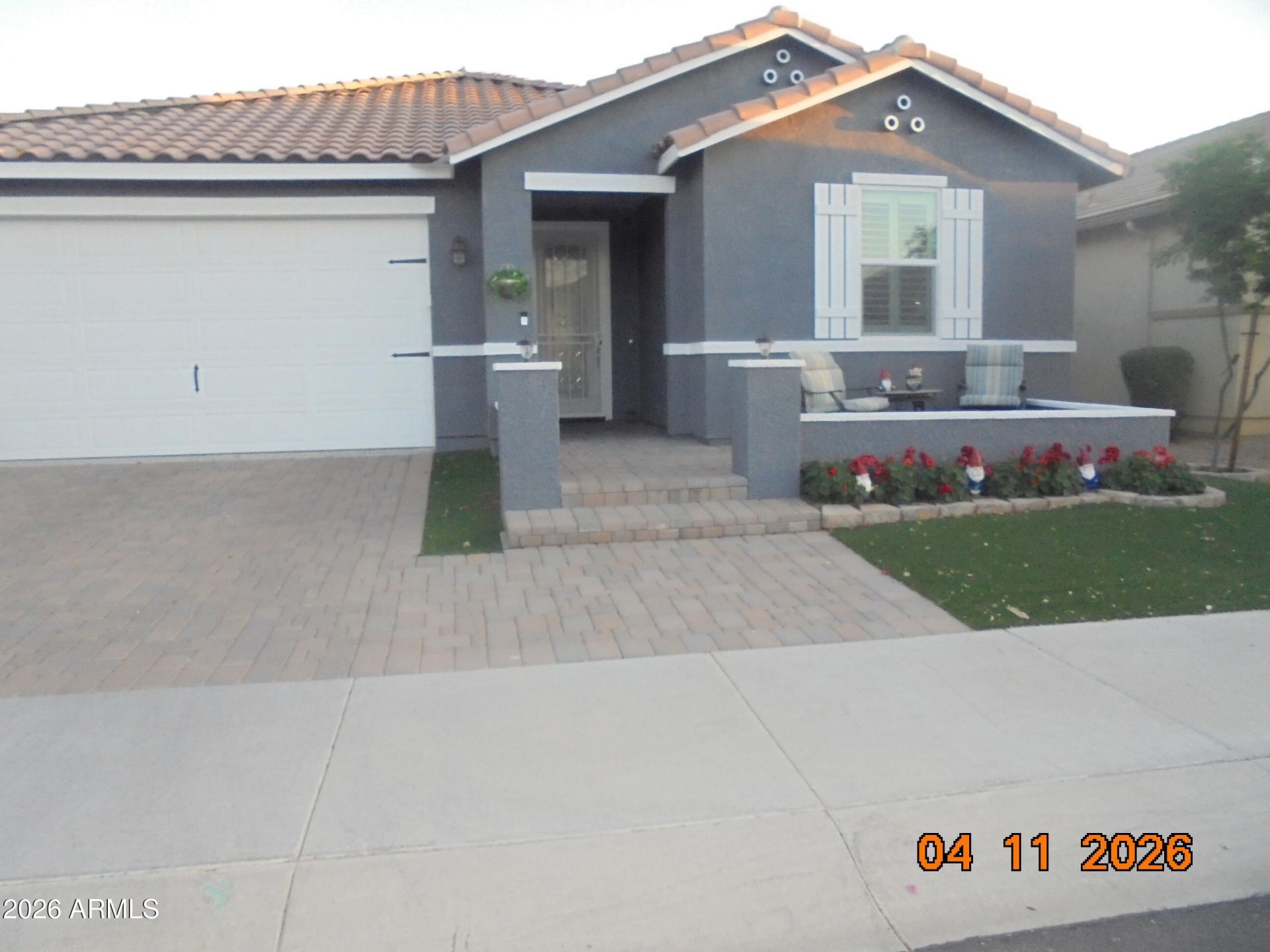 Nice small community, with only 57 homes that are all single level, 2 community parks with kids gym and 2 Gazebos for get togethers. Home has artificial turf in front and backyard. Gas fire pit, Fountain and Gazebo. front patio and back covered Patio. with raised flower garden. garage has a wall of gray cabinets and floor has been finished with sealing chips in multi color. Home is 1 mile to 6 shopping centers. Home is move in ready. can do quick close