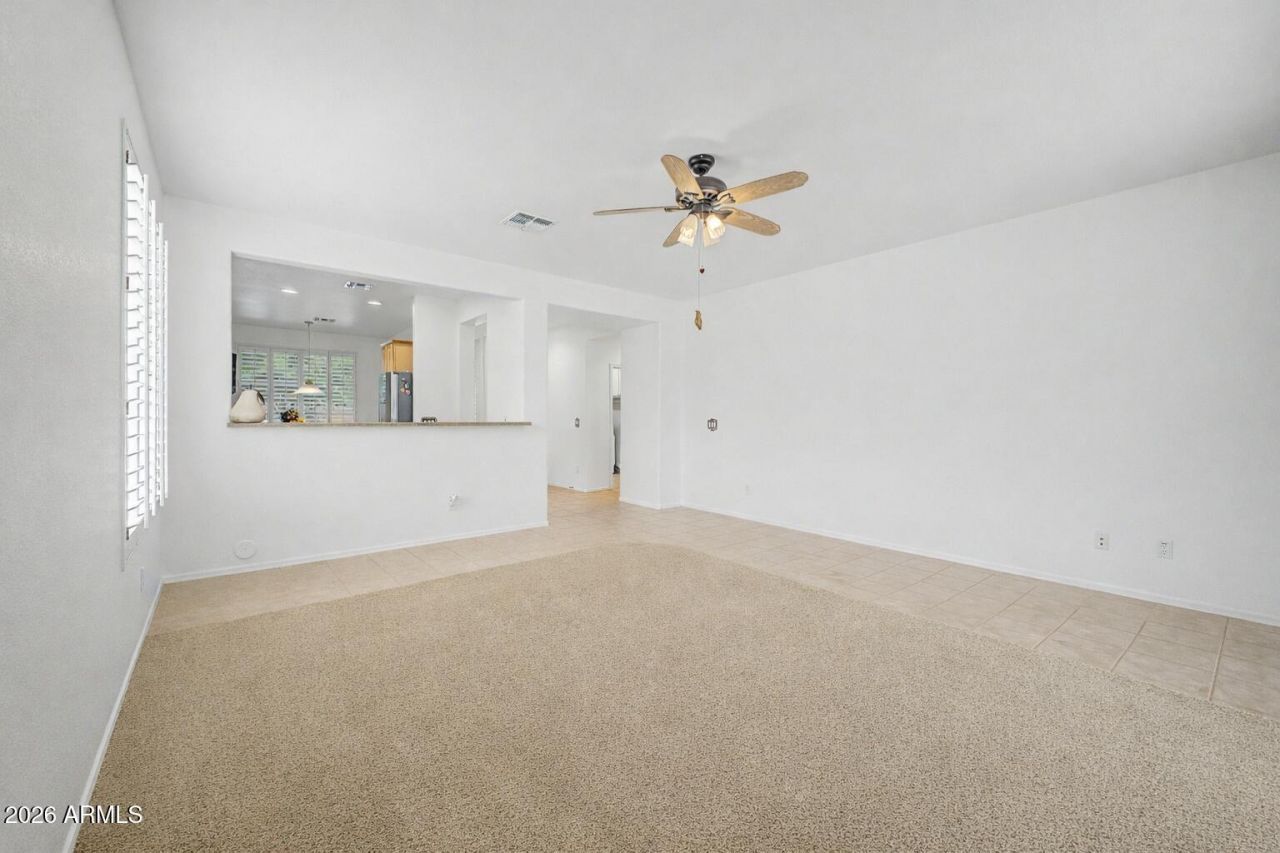Youll LOVE this beautiful home with POOL in Anthem Parkside! A low-care landscape & a 2-car garage w/cabinets are just the beginning. Featuring 3 Bedrooms + DEN, plantation shutters & tons of natural light throughout. Formal living room with sliding doors to the back! The eat-in kitchen boasts SS appliances, ample wood cabinetry, recessed lighting, and a pass-through window w/breakfast bar. Versatile den for an office! The large double-door main bedroom has an ensuite with dual sinks, separate tub/shower, & a walk-in closet. Laundry room with cabinetry. Designed for year-round enjoyment, the spacious backyard oasis is sure to impress with a covered patio, mature trees, and a sparkling pool complete the picture and no neighbors behind! Incredible community amenities to enjoy as well!