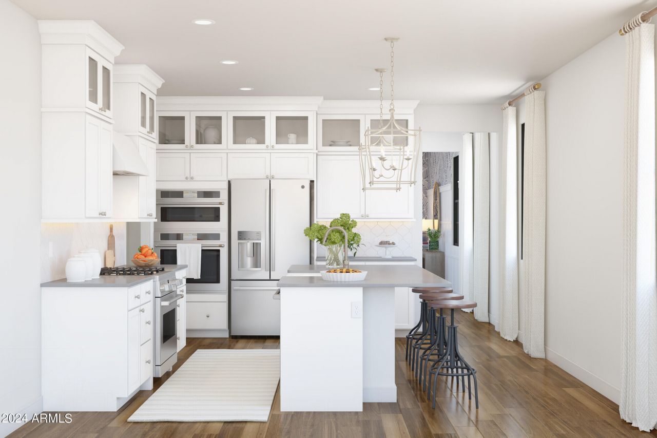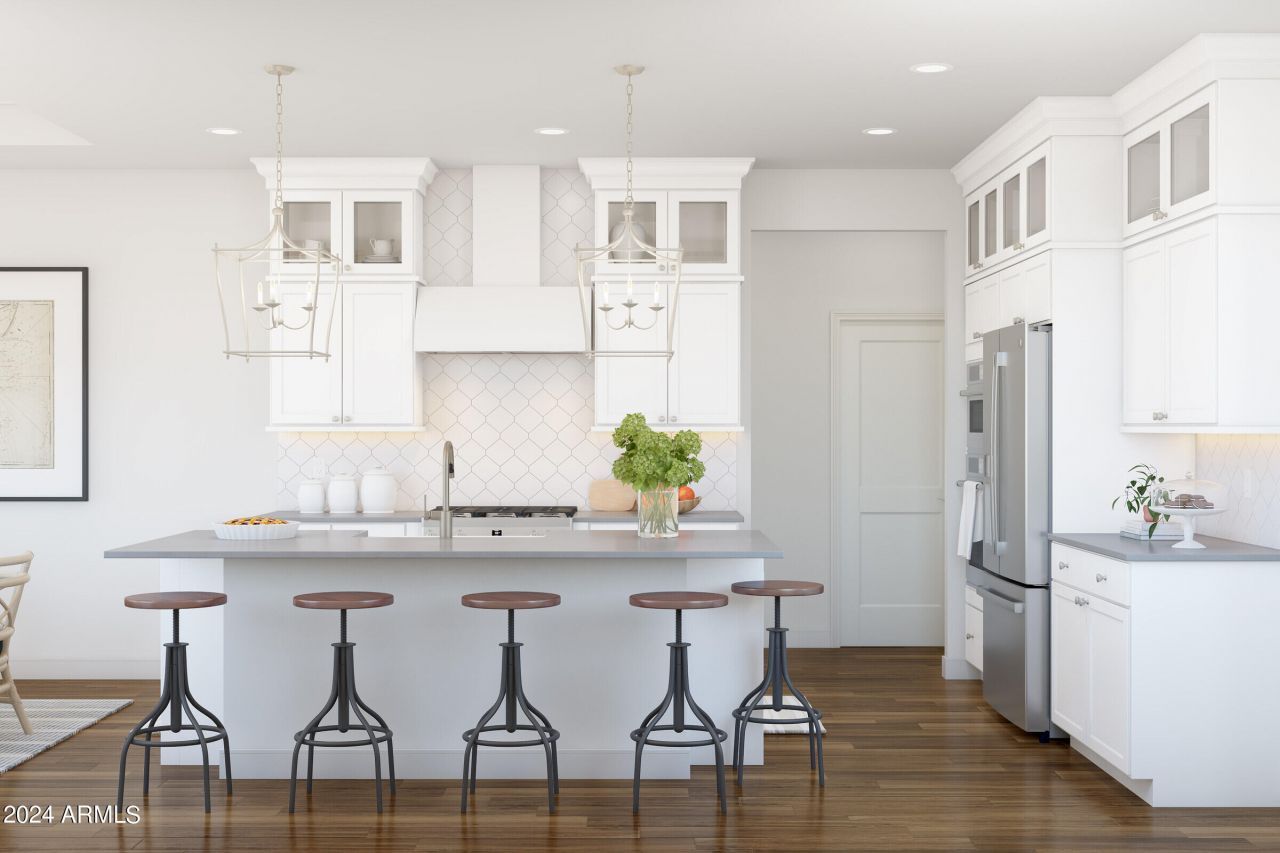 ~Special CASH Pricing Available $399,990~ Embrace vibrant 55+ living in Victory at Verrado, where resort-style amenities and an active lifestyle set the tone. The beautifully designed Blueberry Ash plan highlights warm Farmhouse-inspired finishes and refined details throughout. A coffered ceiling enhances the great room, while a 9 multi-slide glass door opens to a covered patio for seamless indoor-outdoor entertaining. The gourmet kitchen features a large island, pendant lighting, Calacatta Abrezzo quartz, Quill-stained cabinetry, and GE Profile stainless appliances, including a refrigerator. The serene primary suite offers a spa-inspired bath with an upgraded no-step rain shower, creating the perfect private retreat. Dont miss the chance to make this home yours!