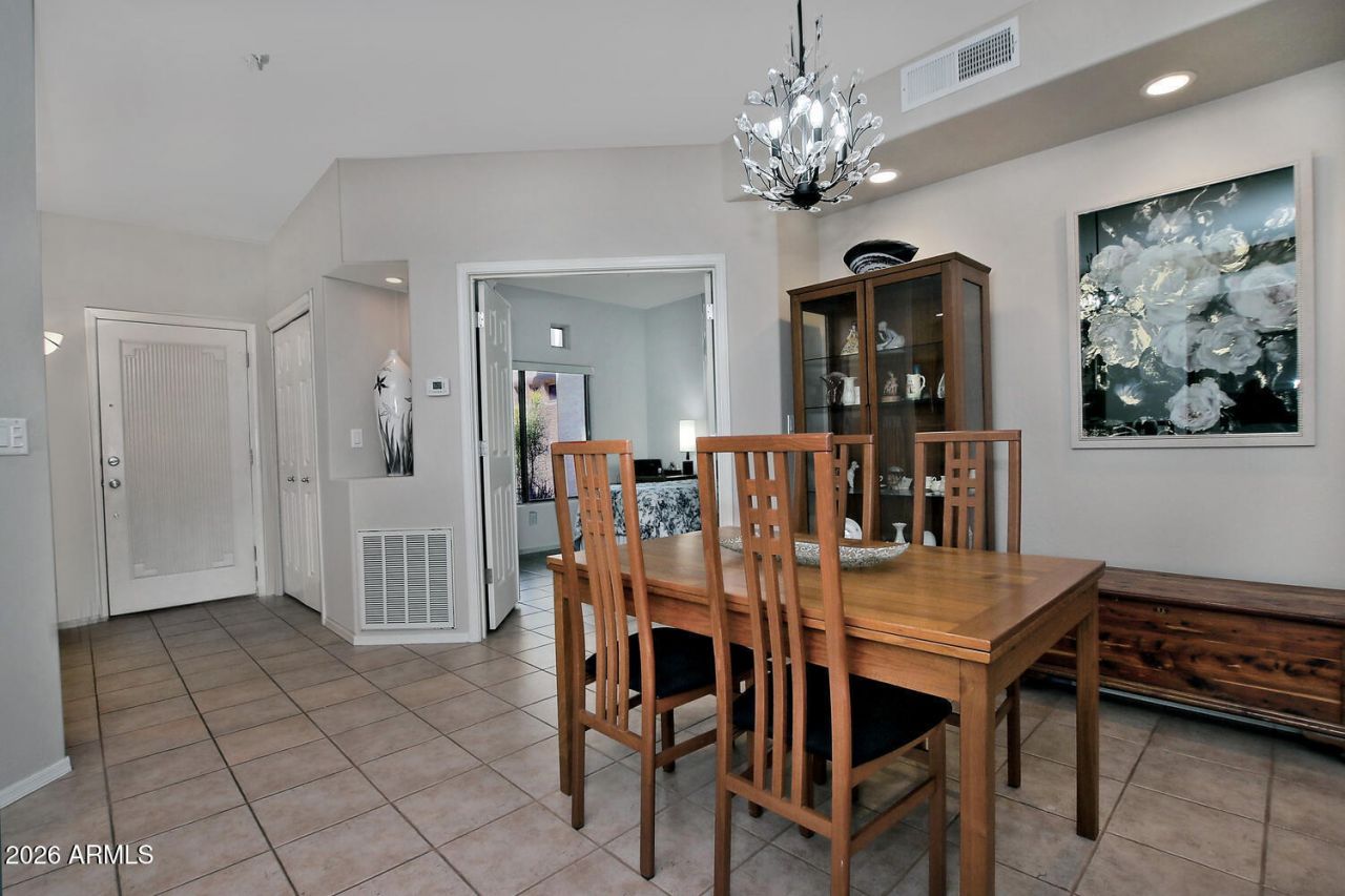 Welcome to this Rarely available 3-bedroom 1448 sqft. ground level plus 1 car garage. This large condo has excellent flow! Enter the open great room and kitchen with bar. Large bright great room with large windows with shutters and views of the patio area. Split bedroom plan. Primary bedroom has a large closet newer walk-in shower and designer vanity area. Split second bedroom and guest bath good sized laundry room with storage. 3rd bedroom or home office in front makes this a very private living setup. Great for winter or year-round occupants. There is a detached 1 car garage with cabinets included and it is close to unit. The beautifully kept common areas include BBQ area, grassy area, Lush landscaping and large pool area. The updates include, designer paint, light kitchen renovation, newer fixtures and fans, Primary bath renovation, newer carpet in some bedrooms. The Raintree Casitas are close to many of Scottsdales finest tourist sites, outdoor activities, world class shopping, dining, golf, schools, and highway 101 to go anywhere else. A must see and a delight to show. move in ready.