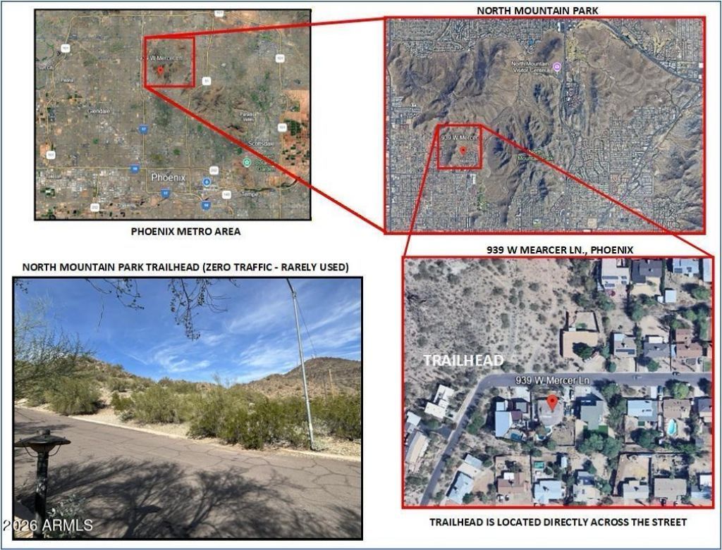 see supplemental remarks section North Central Phoenix - Rare Block-Built Opportunity with 360° Views & Trailhead Access! Prime North Central location directly across the street from the North Mountain Park trailhead - step out your door and hit the trails in one of Phoenixs premier mountain preserves! This solid block-constructed home enjoys breathtaking 360-degree panoramic views of the surrounding mountains and city lights, all from a quiet, peaceful neighborhood surrounded by million-dollar-plus homes.Standout features include:Super cool diving pool - perfect for relaxation or adding instant appealLarge lot with dedicated RV parking spaceBackyard suitable size for garden vegetables, chickens and goatsRare solid block construction - durable, timeless, and built to lastGarage plans + complete with draft blueprint drawings already in hand for a second-story addition (expand now and capture serious upside)Excellent positioning next to high-end neighboring properties - tremendous potential to rebuild bigger and betterLiving next to a trailhead means stepping out your door and instantly accessing miles of hiking and biking trailsno driving, no parking hassles, just pure adventure right at your doorstep. Enjoy daily sunrise or sunset walks, spontaneous evening rides, or weekend-long explorations without ever leaving your neighborhood. The proximity to nature boosts physical health with effortless exercise, reduces stress through easy access to fresh air and scenic views, and adds a premium lifestyle factor thats hard to find in the city. Properties bordering trailheads often hold strong value and appeal to active buyers, as the convenience of endless outdoor recreation becomes a daily reality rather than an occasional outing. Whether youre training for a race, walking the dog, or simply unwinding after work, having miles of trails literally across the street transforms everyday living into something extraordinary. This is a true diamond in the rough with strong bones and incredible location. The home needs a new roof (seller offering $15,000 roofing credit at closing or scheduled replacement) and mostly cosmetic updates, but the payoff for the right buyer or investor will be substantialespecially with the trailhead access, views, lot size, and proximity to luxury homes. Sold strictly as-is. May not appraise at list price due to condition. Attention Investors & Visionary Buyers:No blind offers, please. Bring your contractor, your vision, and your best offer, this is a rare chance to transform a well-located property in one of Phoenixs most desirable areas. Owner/Agent - Arizona licensed real estate agent. Dont miss this North Central gem with trailhead access, endless views, and real potential.